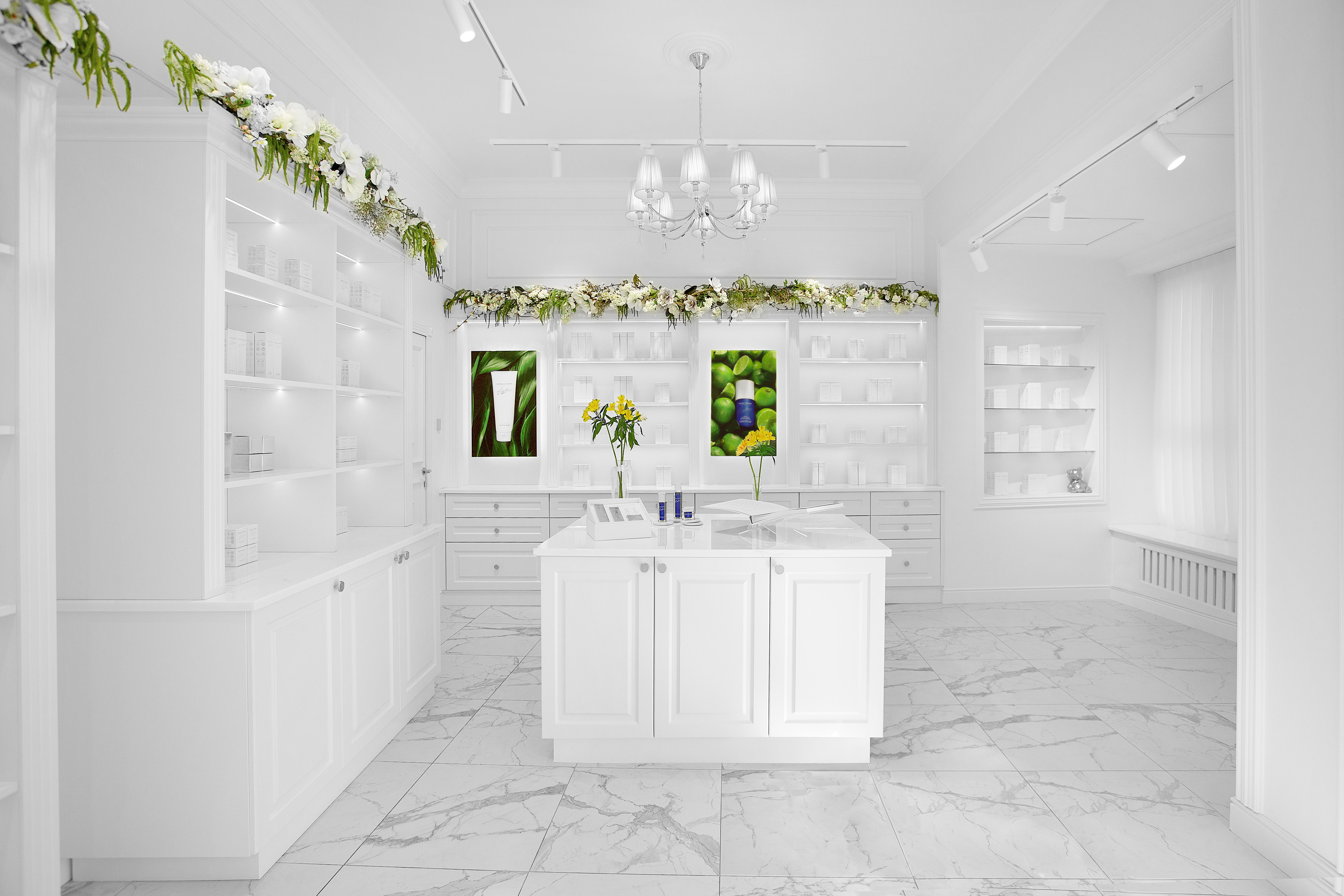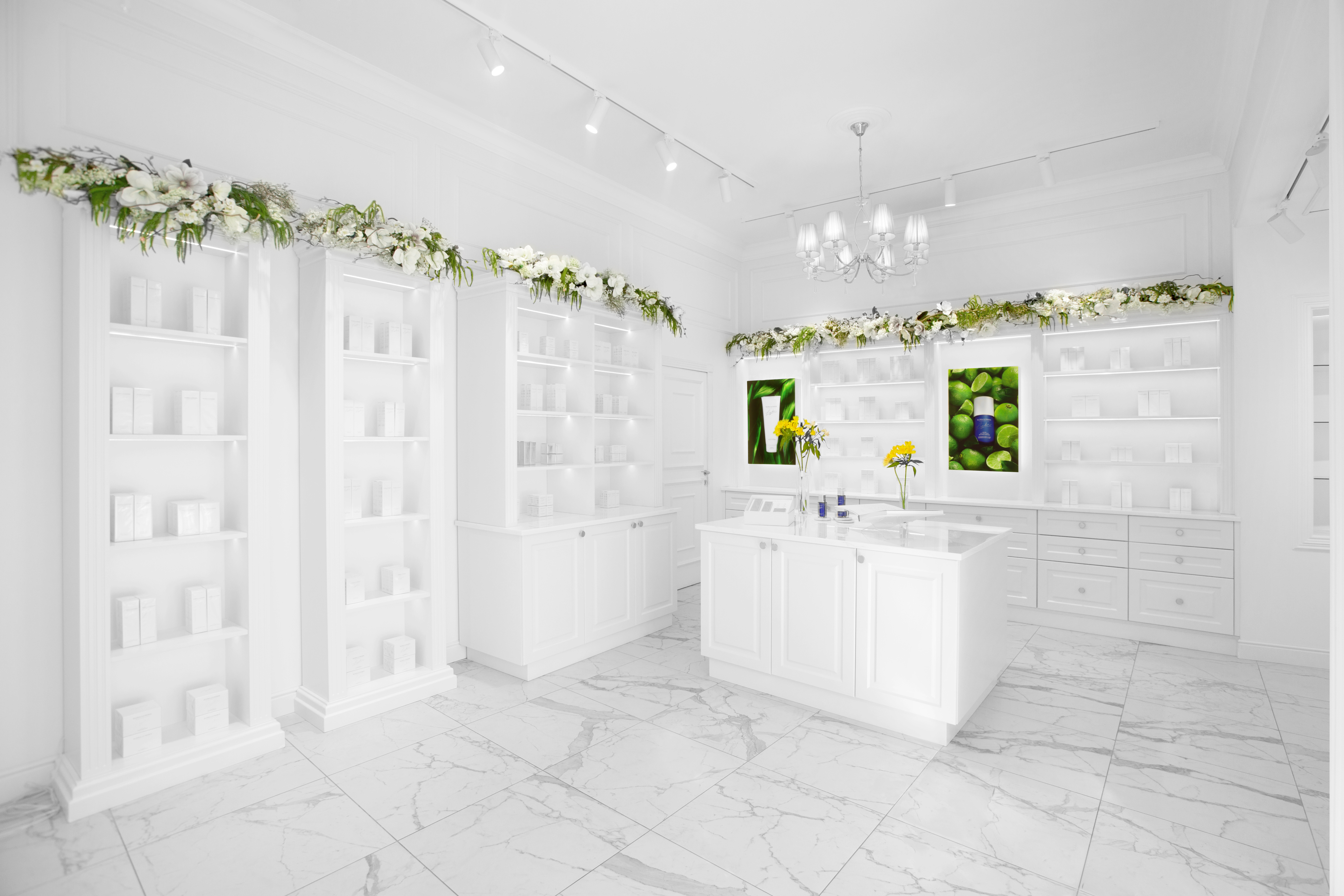 Ненавязчивые консультанты кратко, но ёмко рассказывают о свойствах продуктов из заинтересовавших вас коллекций. А элегантное белоснежное пространство, украшенное мрамором, натуральным деревом и хрусталём, влюбляет в себя необычайной лёгкостью.
